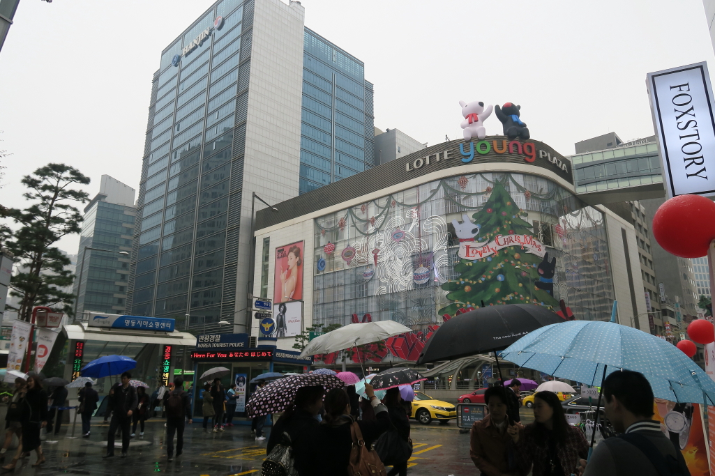 Je loge dans Myeongdong, la logique veut que je commence par ce quartier commerçant et dynamique. Les boutiques commencent à mettre en place les décorations de Noël, on sent que l’automne touche à sa fin.
