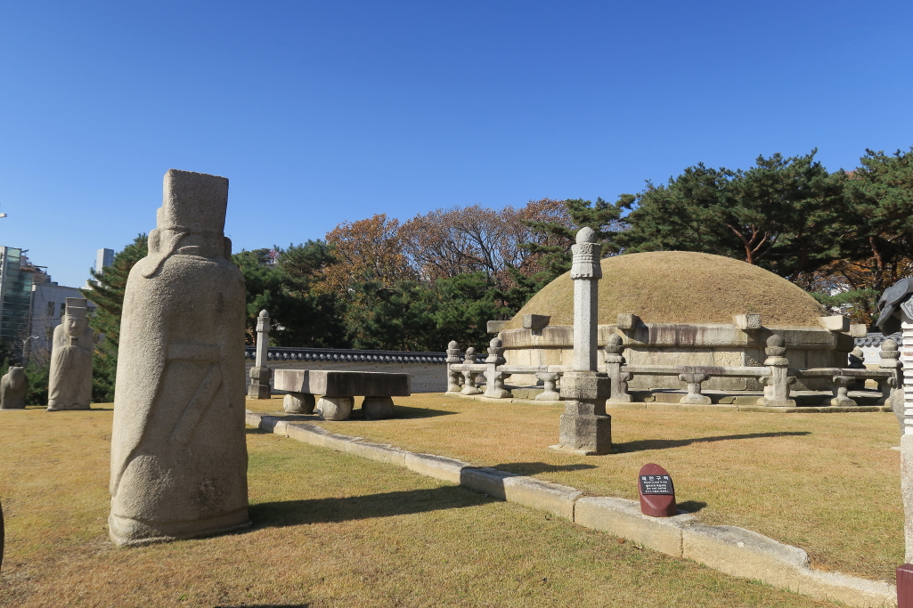 La visite des tombes royales de Séoul n’est pas celle qui est mise le plus en avant par le site d’information touristique ou les tours opérateurs. Mais il s’agit tout de même de plusieurs sites qui ont été classés au patrimoine mondial de l’UNESCO. Celles de Seollung, au sud de la rivière Han, sont différentes de celles que j’ai vu à Gyeongju : bien que le principe du tumulus soit le même, elles sont décorées de statues en pierre. On sent bien que ce n’est pas la même époque. Là encore je ferai un article à part donc je ne mets que quelques images. Le parc est magnifique, à l’écart de l’agitation urbaine, et je crois bien qu’il y a là le plus beau gingko biloba de la Terre entière.
